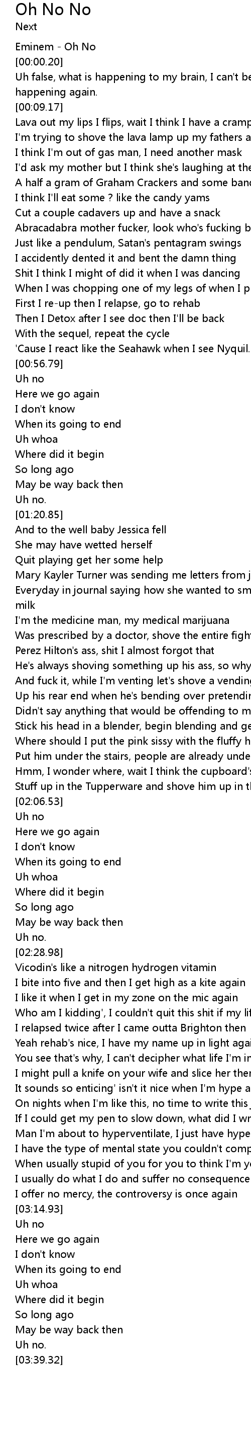 "Oh no!" - Marina and the Diamonds (w/Lyrics), Oh no! by the amazing Marina and the Diamonds with lyrics on screen. Enjoy! http://de-ran-ged.tumblr.com. . We Have got 5 pic about Oh No Lyrics images, photos, pictures, backgrounds, and more. In such page, we additionally have number of images out there. Such as png, jpg, animated gifs, pic art, symbol, blackandwhite, picture, etc. "Capone - Oh No (Lyrics)", Capone - Oh No Lyrics Verse Whatever happened to The boy that I once knew? The boy who said he'd be true Chorus Oh, no . "grandson - Oh No!!! (Lyrics)", Download/Stream: https://encoreapp.co/grandson-ohno grandson - Oh No!!! (Lyrics / Lyric Video) Artists! Market your music with ..